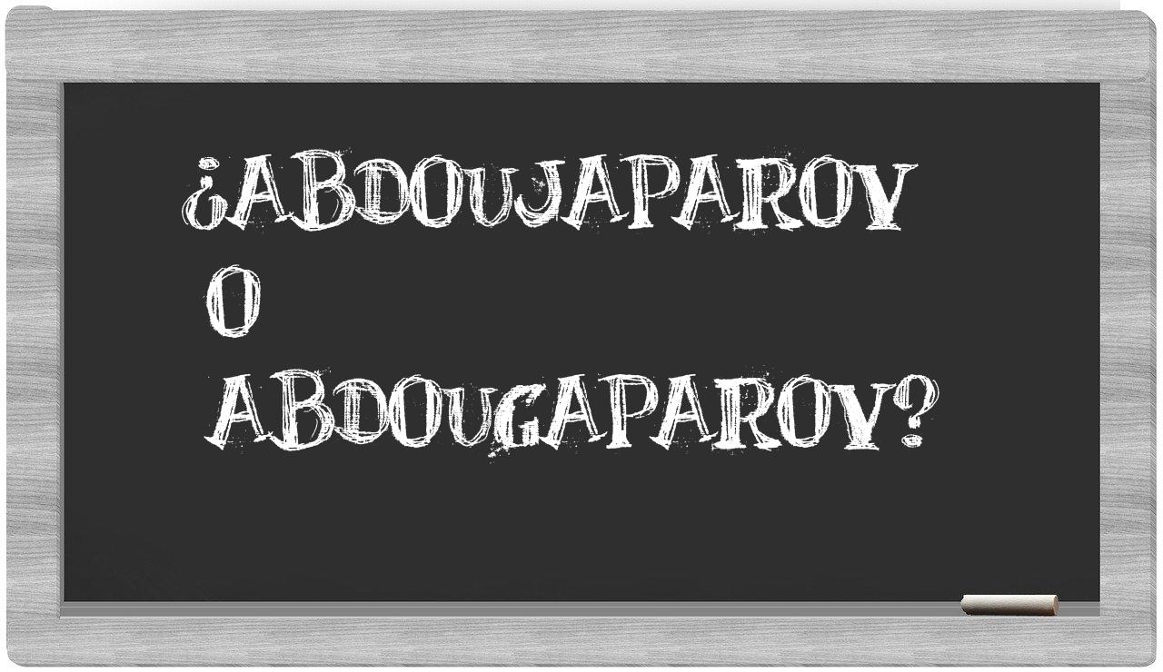 Al contemplar la relación entre abdoujaparov y abdougaparov, es fundamental que no sientas incertidumbre, puesto que únicamente abdoujaparov se presenta como la opción adecuada. Por otro lado, abdougaparov no se encuentra registrada en el prestigioso Diccionario de la Real Academia Española.