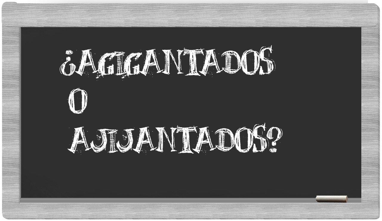 En la relación específica entre agigantados y ajijantados, no hay lugar para la incertidumbre, dado que únicamente agigantados se encuentra debidamente redactada. Por otro lado, ajijantados no figura en el Diccionario de la Real Academia Española.