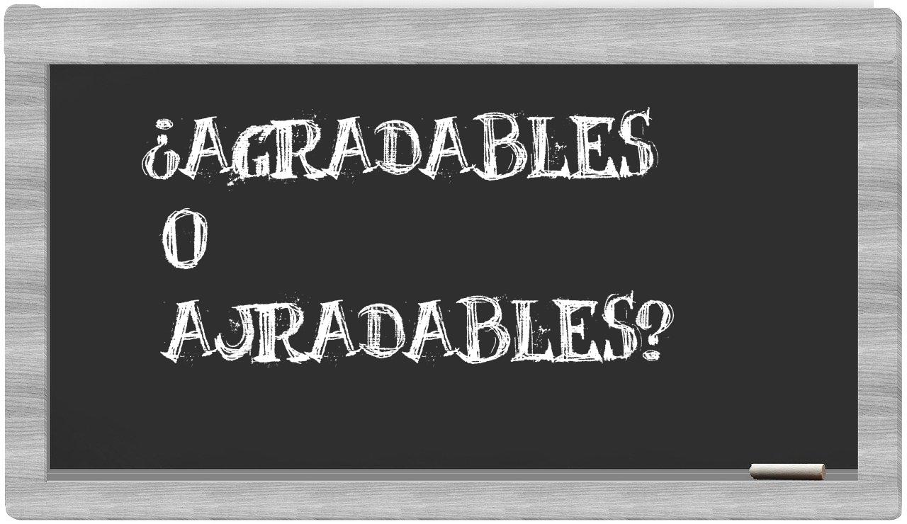 En la situación particular que involucra los términos agradables y ajradables, no hay lugar para la indecisión, puesto que únicamente agradables es la opción correcta según las normas del idioma. En cambio, ajradables no figura en el Diccionario de la Real Academia Española.