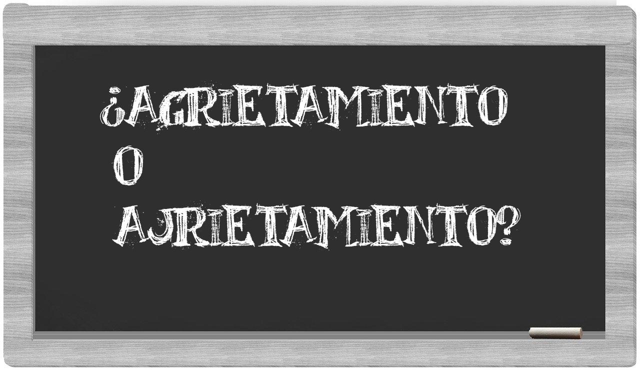 Cuando se trata de las palabras agrietamiento y ajrietamiento, no hay lugar para la confusión, puesto que únicamente agrietamiento se encuentra correctamente redactada, mientras que ajrietamiento no es una entrada válida en el Diccionario de la Real Academia Española.