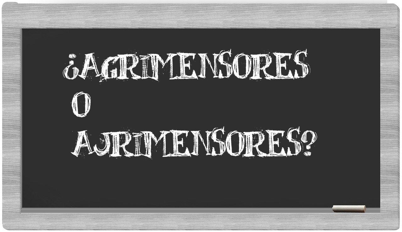 Cuando se trata de elegir entre agrimensores y ajrimensores, la decisión es más que obvia, puesto que únicamente agrimensores se halla correctamente redactada, mientras que ajrimensores carece de reconocimiento en el Diccionario de la Real Academia Española.