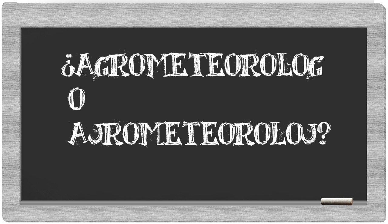 Cuando se trata de la distinción entre agrometeorolog y ajrometeoroloj, es fundamental que no titubees, puesto que únicamente agrometeorolog es la forma adecuada según los estándares del idioma. Por otro lado, ajrometeoroloj no se encuentra registrada en el Diccionario de la Real Academia Española.