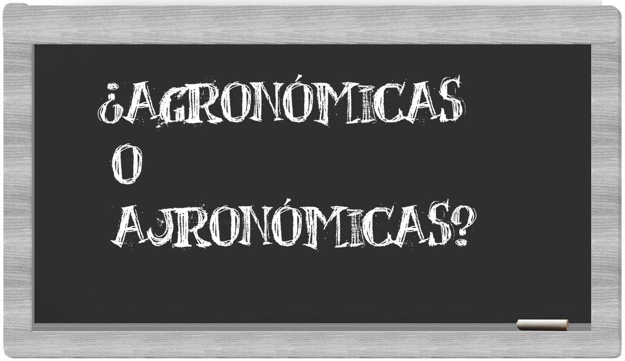 Cuando se trata de la elección entre agronómicas y ajronómicas, la decisión debería ser clara como el agua, porque únicamente agronómicas cuenta con la validación que brinda el Diccionario de la Real Academia de la Lengua, mientras que ajronómicas se encuentra ausente en su repertorio.
