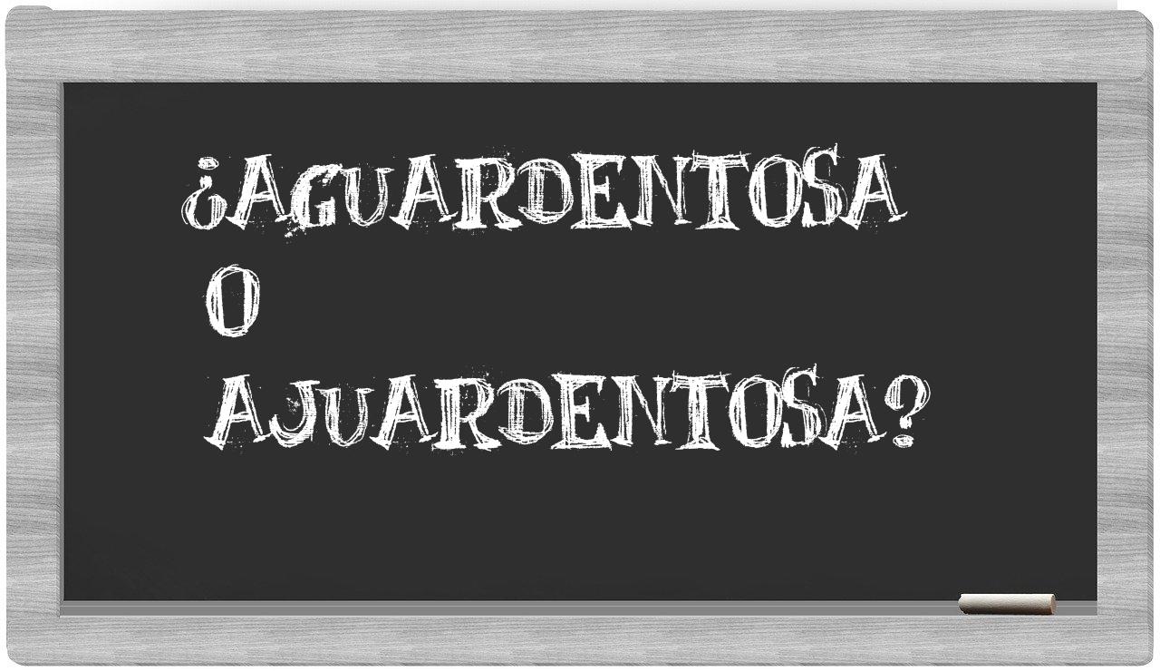 Cuando se trata de elegir entre aguardentosa y ajuardentosa, la decisión es clara y no debe generar incertidumbres, puesto que únicamente aguardentosa se encuentra debidamente documentada en el Diccionario de la Real Academia Española, mientras que ajuardentosa carece de reconocimiento en su obra.