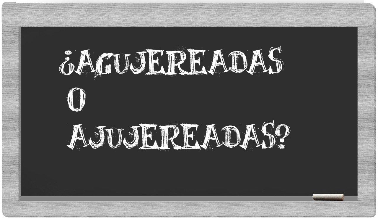 En la situación particular que involucra los términos agujereadas y ajujereadas, no deberías tener ningún tipo de incertidumbre, puesto que únicamente agujereadas se encuentra adecuadamente formulada. Por otro lado, ajujereadas carece de reconocimiento en el Diccionario de la Real Academia Española.