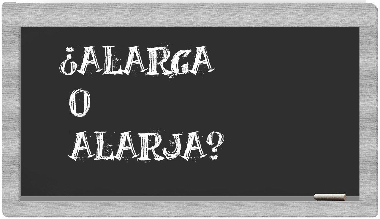 Cuando te enfrentes a la elección entre alarga y alarja, no vaciles en tu decisión, puesto que solo alarga es la forma adecuada; en cambio, alarja carece de reconocimiento en el Diccionario de la Real Academia Española.