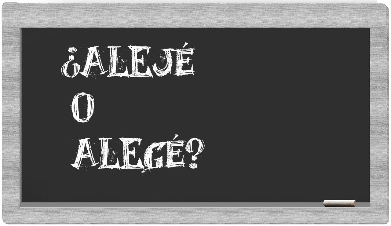 En la particular situación que involucra los términos alejé y alegé, nunca deberías vacilar, puesto que únicamente alejé se encuentra debidamente escrita. La forma alegé carece de reconocimiento en el Diccionario de la Real Academia Española.