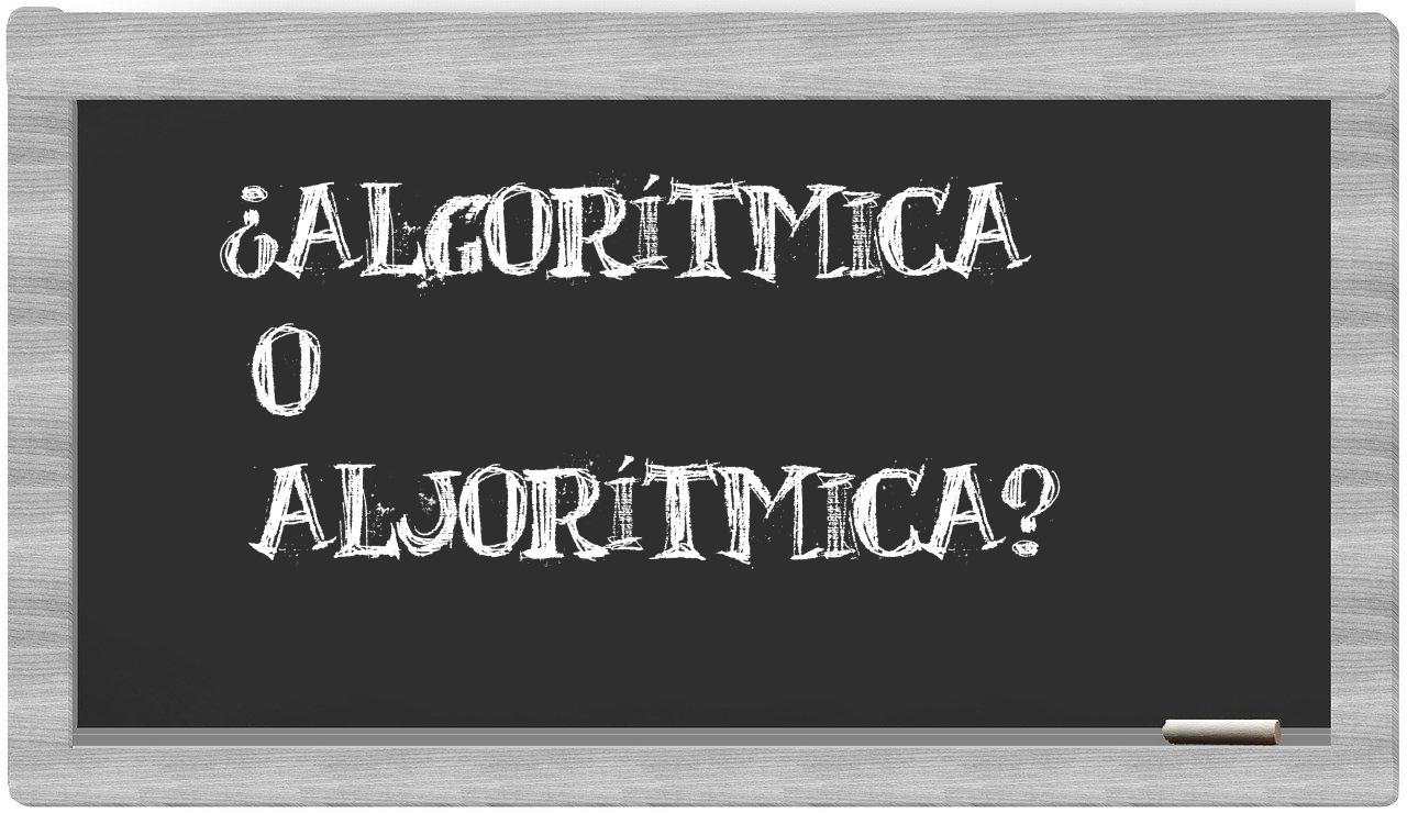 Cuando te enfrentes a las palabras algorítmica y aljorítmica, no vaciles ni un instante, puesto que únicamente algorítmica se encuentra adecuadamente redactada. La palabra aljorítmica no figura en el Diccionario de la Real Academia Española.