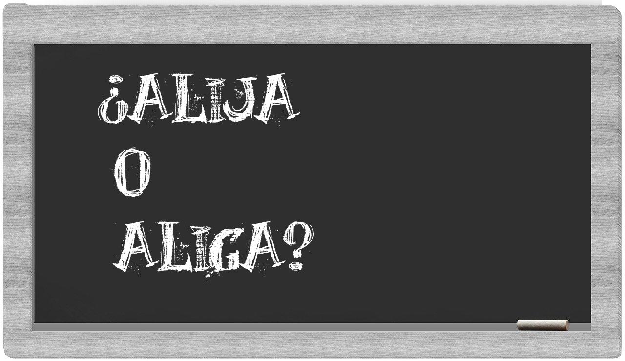 En la situación particular que involucra a alija y aliga, nunca debes titubear, puesto que únicamente alija es la forma adecuada; por otro lado, aliga no se encuentra registrada en el Diccionario de la Real Academia Española.