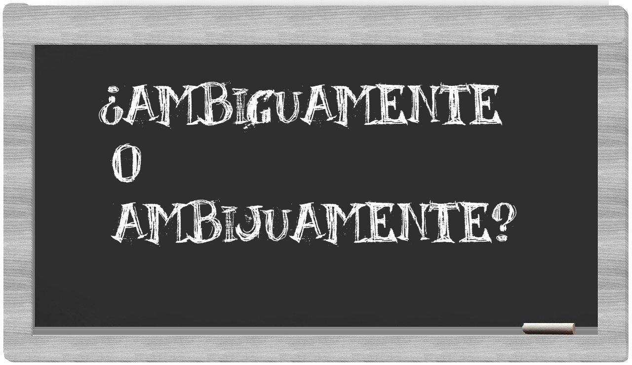 No deberías vacilar en la elección entre ambiguamente y ambijuamente, puesto que únicamente ambiguamente está correctamente expresada, mientras que ambijuamente carece de reconocimiento en el Diccionario de la Real Academia Española.