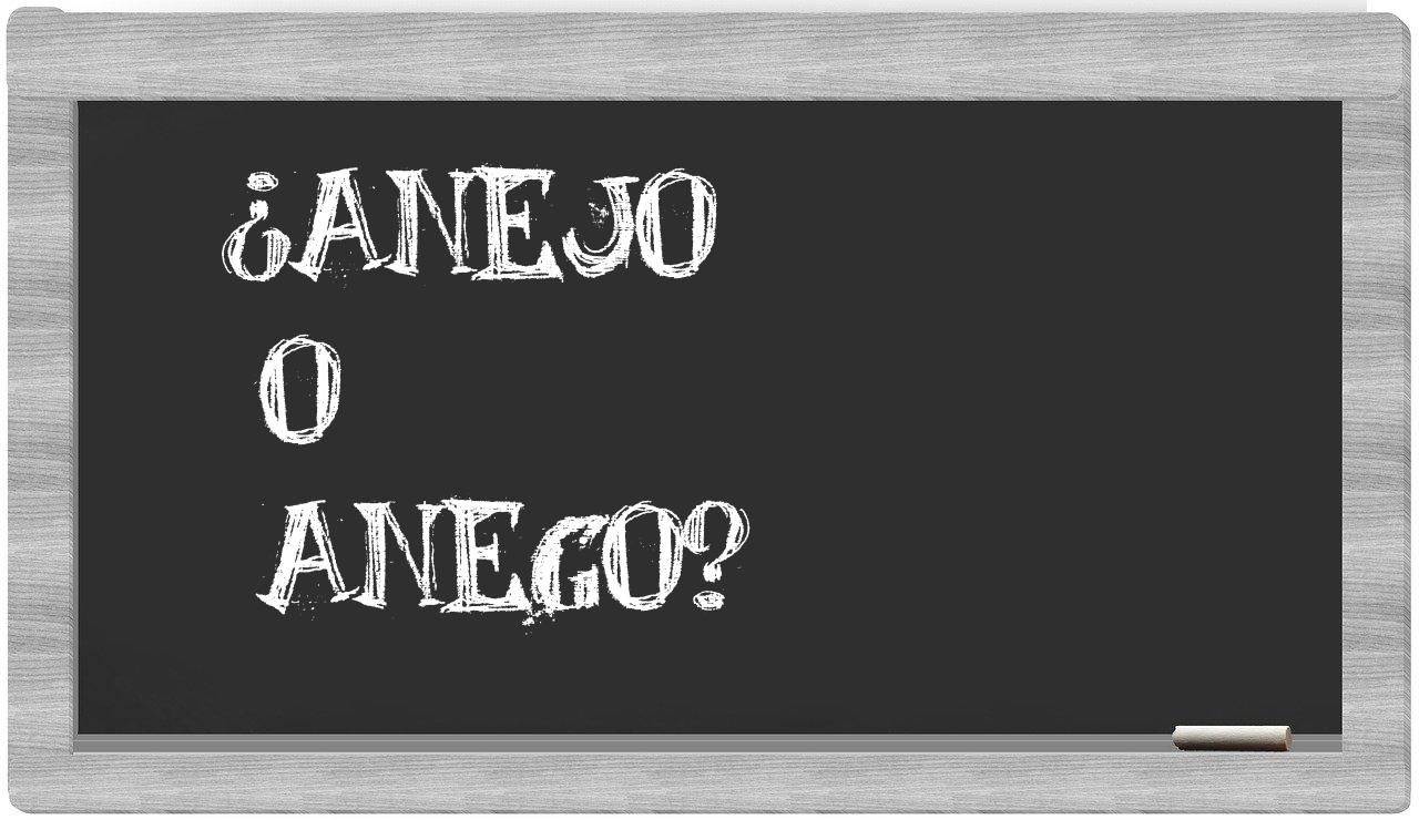 En la situación específica que confronta a anejo y anego, no deberías titubear en absoluto, pues únicamente anejo está validada como correcta. Por otro lado, anego no se encuentra registrada en el Diccionario de la Real Academia Española.