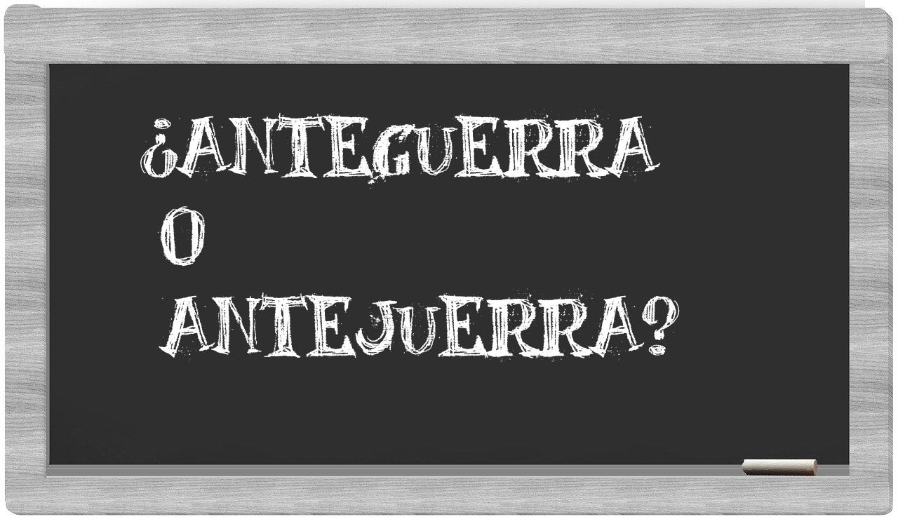 En la situación particular que involucra los términos anteguerra y antejuerra, no deberías titubear en absoluto, pues únicamente anteguerra se encuentra debidamente escrita. Por otro lado, antejuerra no figura entre las entradas del Diccionario de la Real Academia de la Lengua.