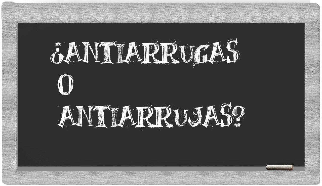 Cuando se trata de discernir entre los términos antiarrugas y antiarrujas, no debería existir la más mínima vacilación, puesto que únicamente antiarrugas se encuentra correctamente formulada; en cambio, antiarrujas no figura en el repertorio del Diccionario de la Real Academia Española.