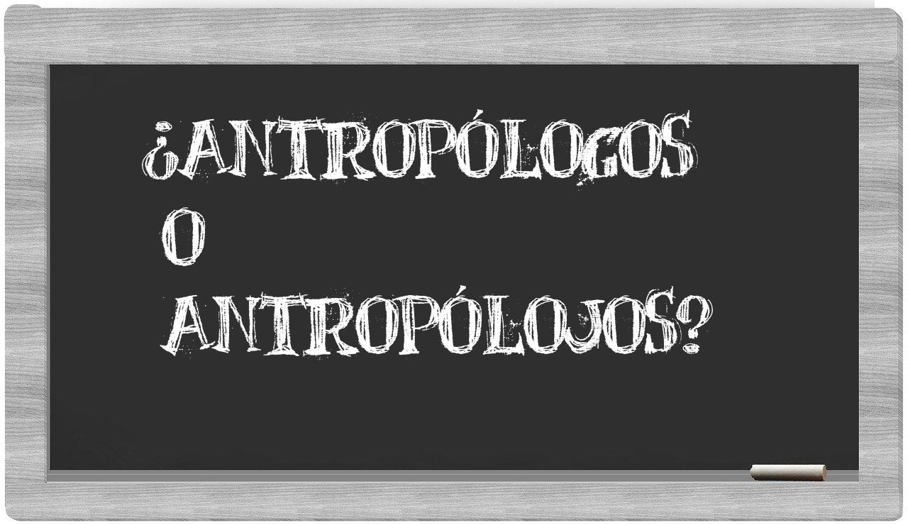 Cuando se presenta la elección entre antropólogos y antropólojos, no debería haber lugar para la incertidumbre, puesto que únicamente antropólogos es la forma adecuada y reconocida, mientras que antropólojos está ausente en el Diccionario de la Real Academia Española.