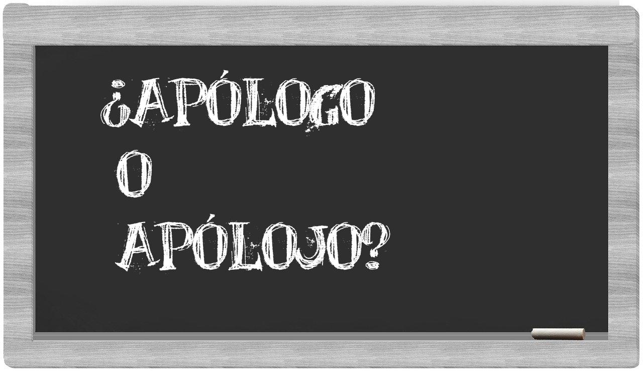 En la particular situación que involucra los términos apólogo y apólojo, nunca deberías vacilar, puesto que únicamente apólogo se encuentra debidamente escrita. La forma apólojo carece de reconocimiento en el Diccionario de la Real Academia Española.