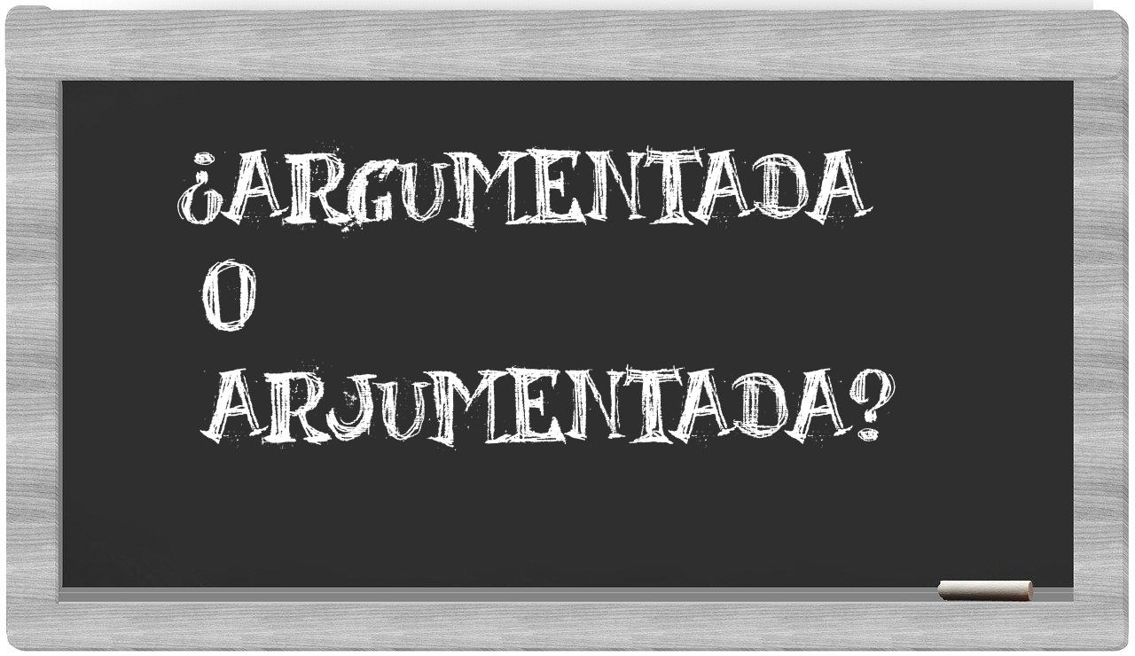 En la situación particular que involucra a argumentada y arjumentada, nunca debes titubear, puesto que únicamente argumentada es la forma adecuada; por otro lado, arjumentada no se encuentra registrada en el Diccionario de la Real Academia Española.