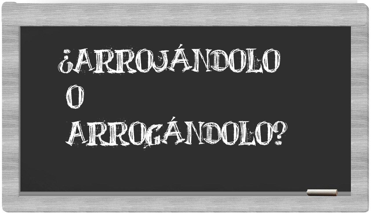 En la particular situación que se presenta entre arrojándolo y arrogándolo, no deberías experimentar incertidumbre, puesto que únicamente arrojándolo es la forma adecuada, mientras que arrogándolo no figura en el Diccionario de la Real Academia Española.