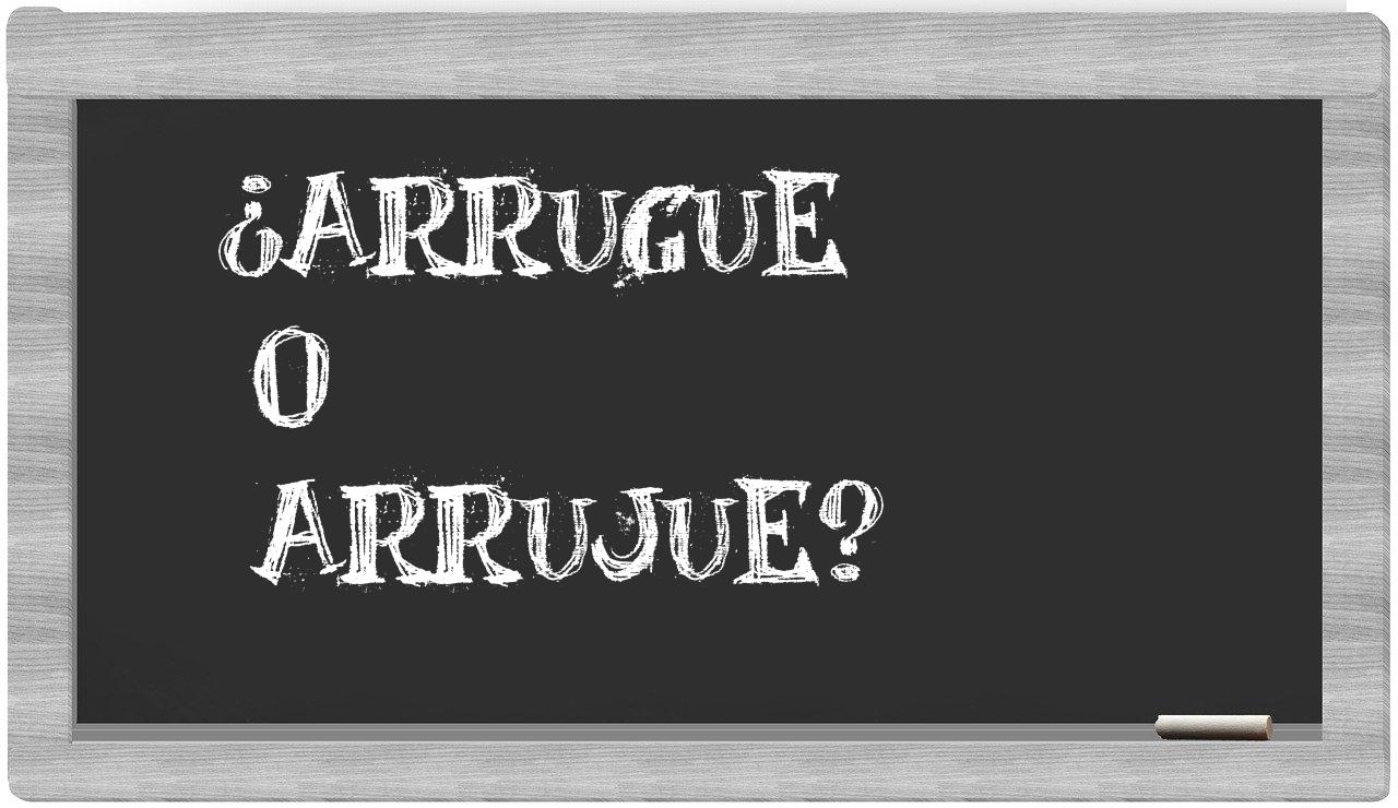 En la situación particular que involucra los términos arrugue y arrujue, no deberías tener ningún tipo de incertidumbre, puesto que únicamente arrugue se encuentra adecuadamente formulada. Por otro lado, arrujue carece de reconocimiento en el Diccionario de la Real Academia Española.