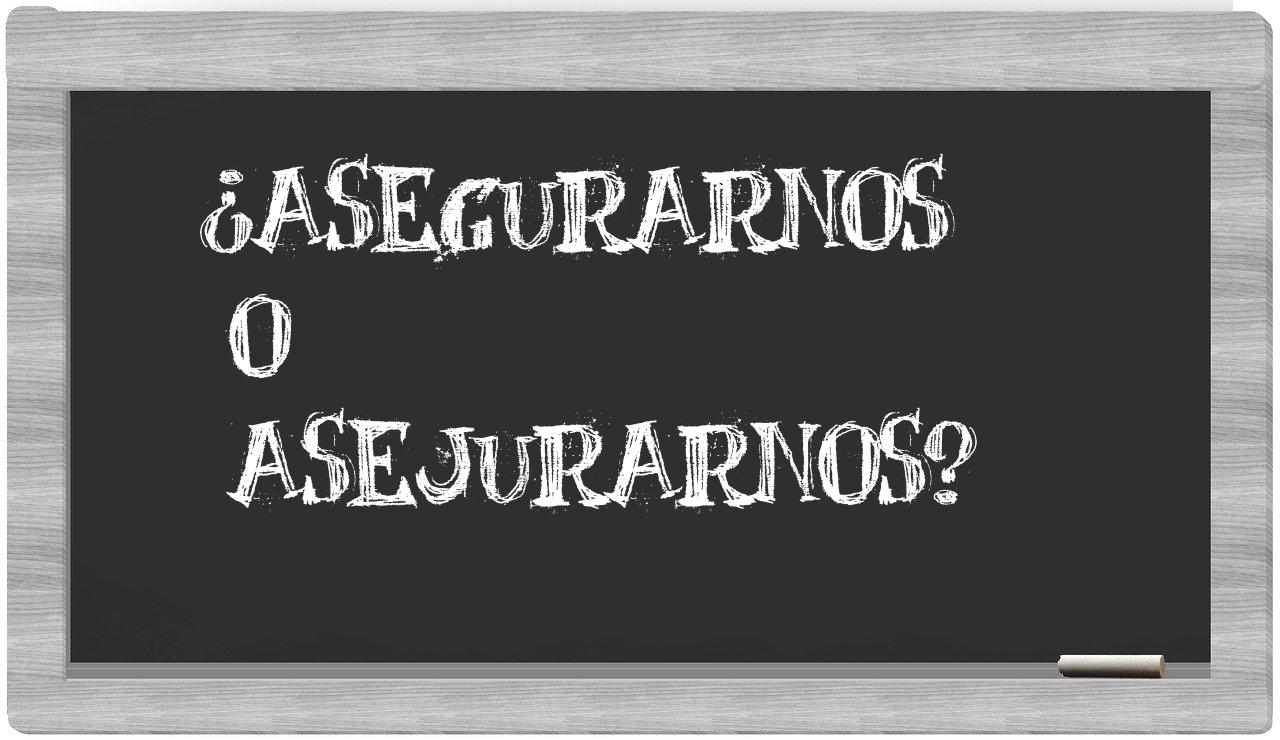 Cuando se trata de la distinción entre asegurarnos y asejurarnos, no hay lugar para las dudas; únicamente asegurarnos es la expresión adecuada que puedes encontrar, puesto que asejurarnos no figura en el diccionario de la Real Academia Española.