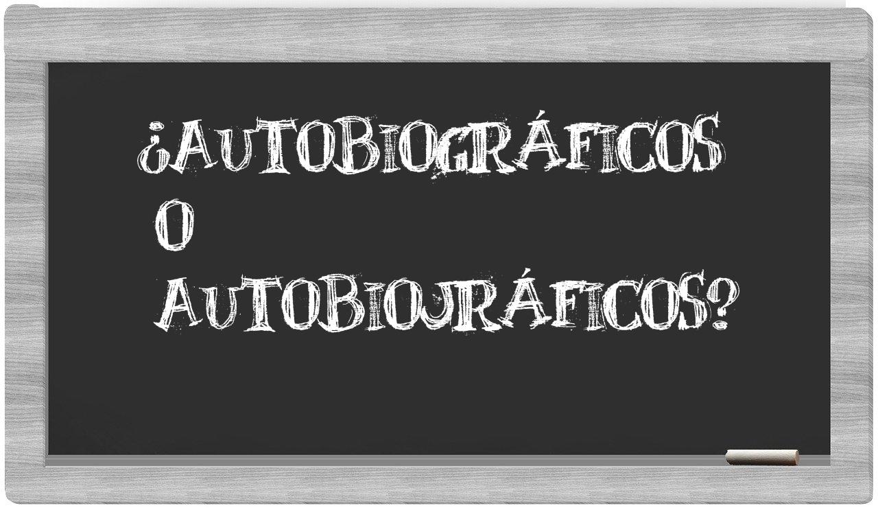 Cuando se trata de la interacción entre autobiográficos y autobiojráficos, no deberías titubear ni un segundo, puesto que únicamente autobiográficos es la opción que se encuentra debidamente registrada. En cambio, autobiojráficos no forma parte del repertorio del Diccionario de la Real Academia Española.