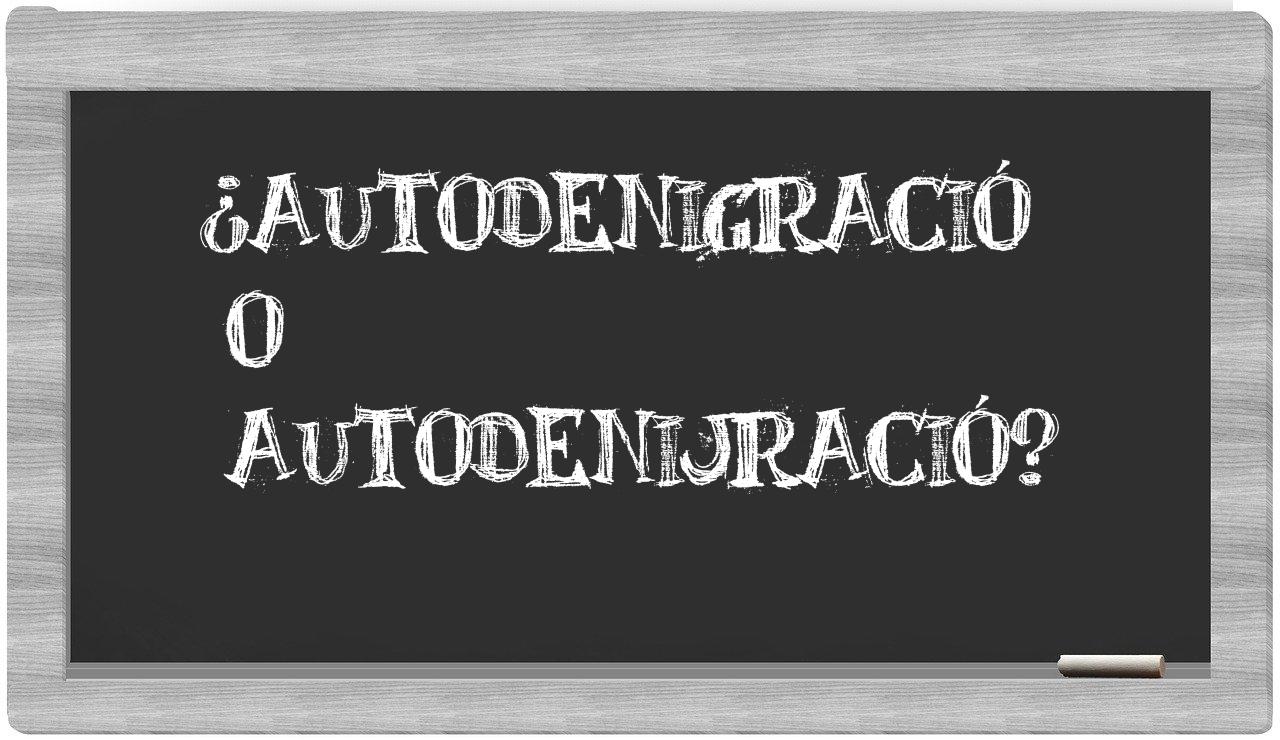 Cuando te enfrentes a la elección entre autodenigració y autodenijració, no vaciles en tu decisión, puesto que únicamente autodenigració es la opción que se encuentra debidamente registrada en el Diccionario de la Real Academia Española, mientras que autodenijració no tiene cabida en su vasto léxico.