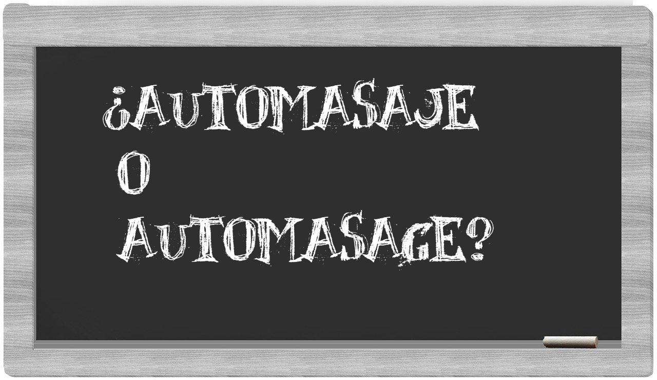 Cuando se trata de elegir entre automasaje y automasage, la decisión nunca debe ser motivo de confusión, puesto que únicamente automasaje se encuentra correctamente redactada. En cambio, automasage carece de reconocimiento en el Diccionario de la Real Academia Española.