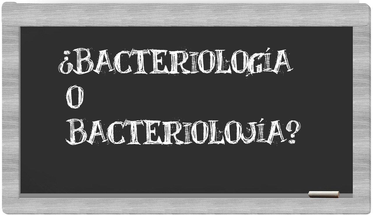 En la particular situación que involucra los términos bacteriología y bacteriolojía, no deberías titubear en tu elección, puesto que únicamente bacteriología se encuentra debidamente registrada en el Diccionario de la Real Academia Española, mientras que bacteriolojía no tiene cabida en su lexicografía.