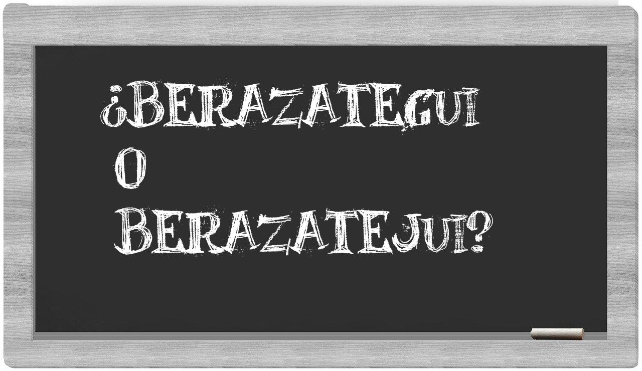 En la situación particular entre los términos berazategui y berazatejui, no hay motivo para titubear, puesto que únicamente berazategui es la opción válida. El término berazatejui no está registrado en el Diccionario de la Real Academia Española.