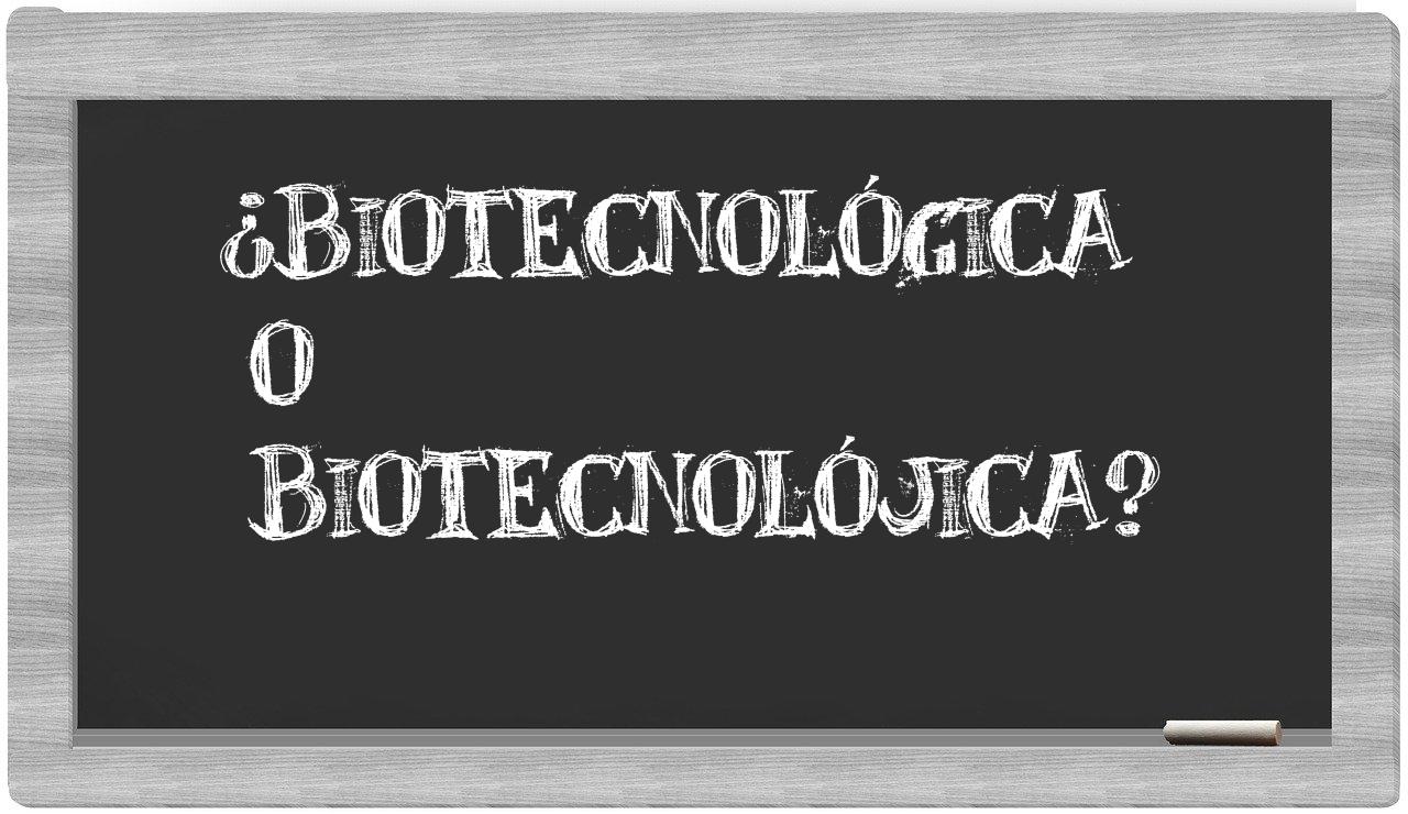 Cuando se presenta la elección entre biotecnológica y biotecnolójica, es fundamental que no haya lugar para la incertidumbre, puesto que únicamente biotecnológica es la variante aceptada y reconocida, mientras que biotecnolójica no puede encontrarse en el prestigioso Diccionario de la Real Academia Española.