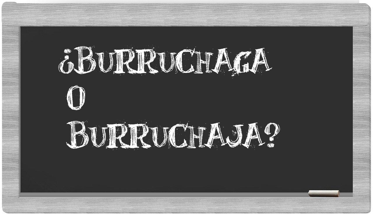 Cuando se trata de elegir entre burruchaga y burruchaja, la decisión es clara y no debe generar incertidumbres, puesto que únicamente burruchaga se encuentra debidamente documentada en el Diccionario de la Real Academia Española, mientras que burruchaja carece de reconocimiento en su obra.