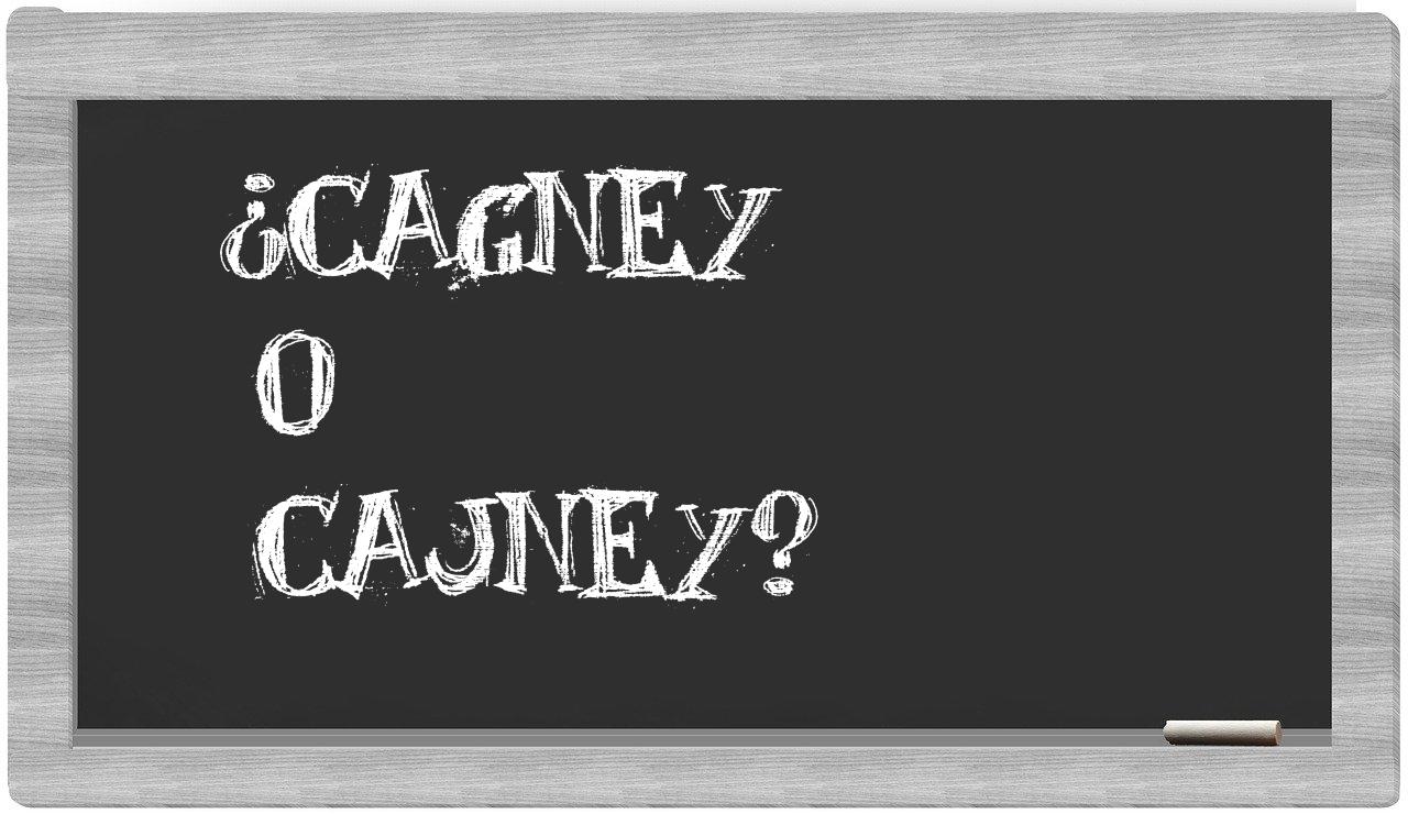 En la particular situación que involucra los términos cagney y cajney, no deberías tener ninguna vacilación, puesto que únicamente cagney se encuentra correctamente formulada. Por otro lado, cajney no se halla registrada en el Diccionario de la Real Academia de la Lengua.