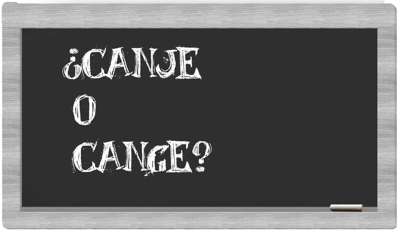 En la situación específica referente a los términos canje y cange, no deberías tener ninguna incertidumbre, puesto que solo canje es la opción que se encuentra debidamente registrada, mientras que cange carece de reconocimiento en el Diccionario de la Real Academia Española.