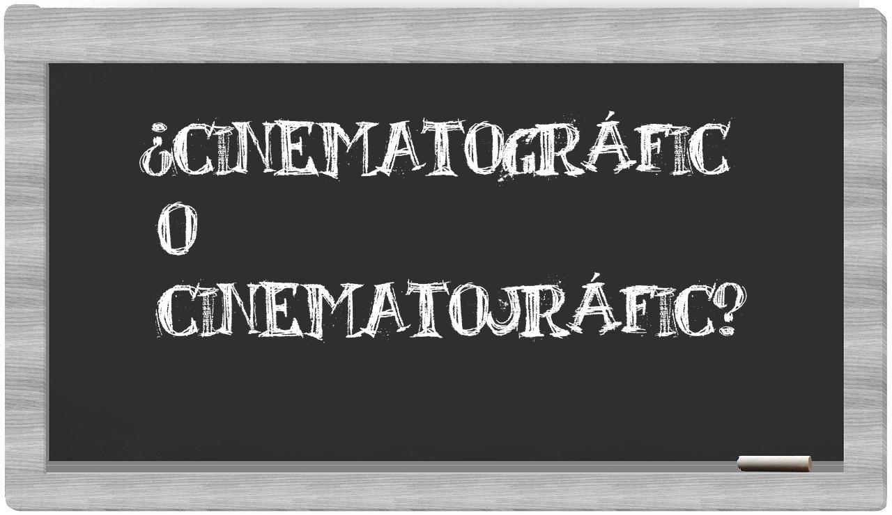 En la particular situación que involucra los términos cinematográfic y cinematojráfic, no deberías tener ninguna vacilación, puesto que únicamente cinematográfic se encuentra correctamente formulada. Por otro lado, cinematojráfic no se halla registrada en el Diccionario de la Real Academia de la Lengua.