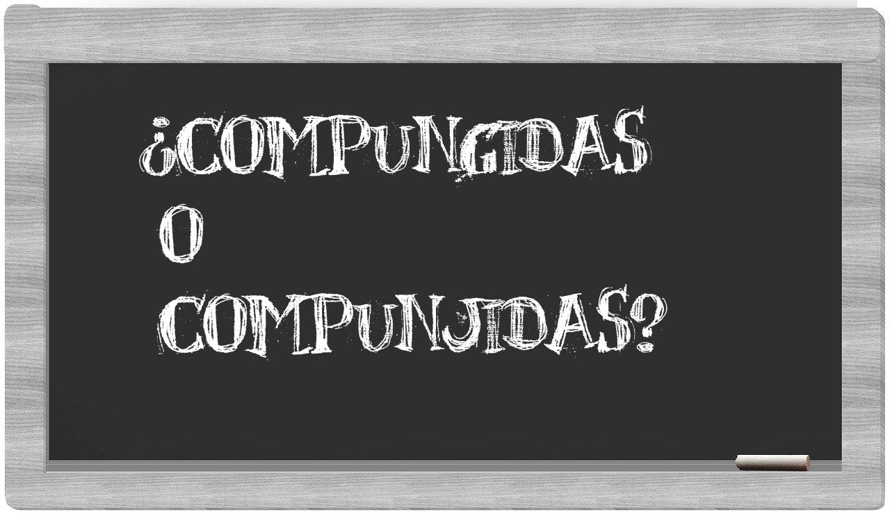 En la situación específica que se presenta entre los términos compungidas y compunjidas, no deberías titubear en absoluto, puesto que únicamente compungidas es el que se encuentra debidamente escrito. El término compunjidas no se halla registrado en el Diccionario de la Real Academia Española.