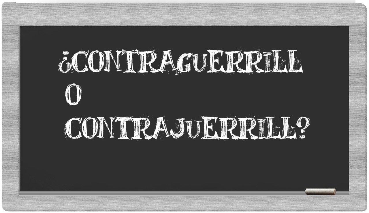La mezcla entre contraguerrill y contrajuerrill surge, fundamentalmente, de su semejanza en la manera de pronunciarse. En muchas variantes del idioma español, ambas expresiones se articulan de forma casi idéntica, lo que puede inducir a creer que comparten la misma escritura. No obstante, la forma correcta de cada término está determinada por su raíz etimológica y por las normativas particulares que rigen la ortografía en español.