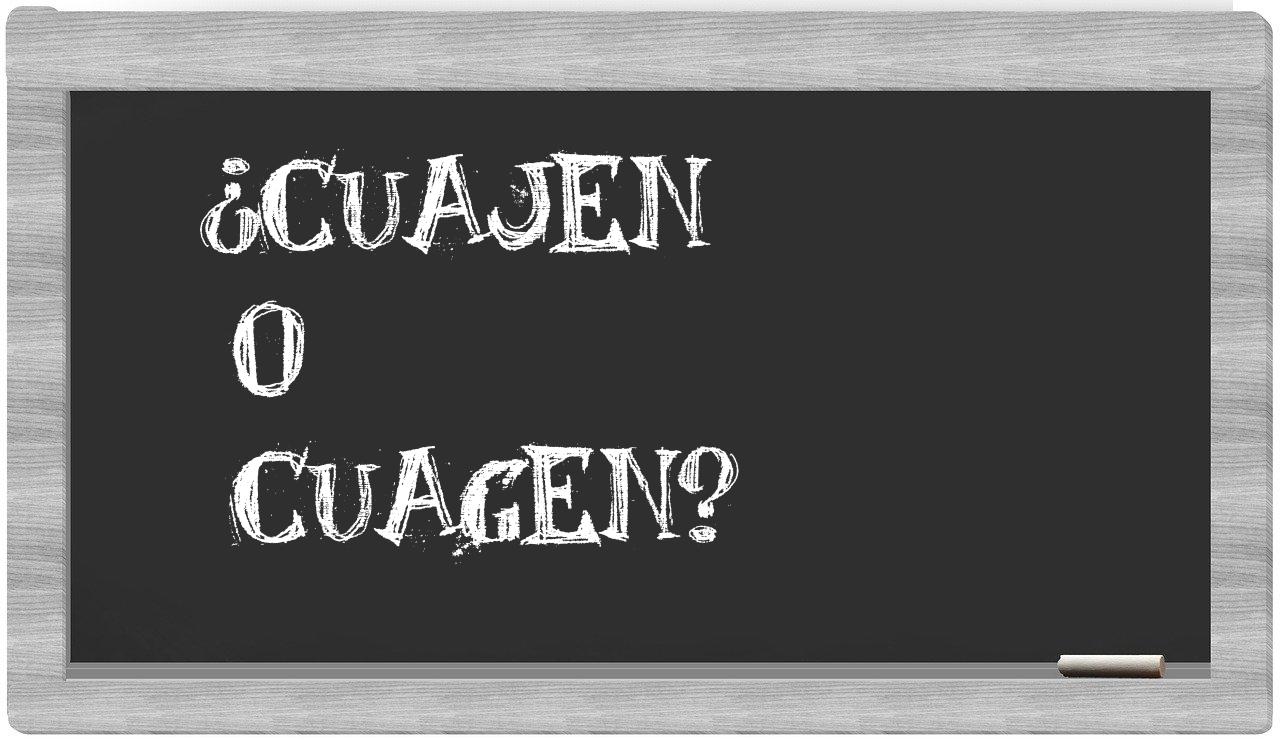 Cuando se plantea la relación entre cuajen y cuagen, no debe prevalecer la incertidumbre, puesto que únicamente cuajen se encuentra adecuadamente escrita. Contrariamente, cuagen no figura en el Diccionario de la Real Academia Española.