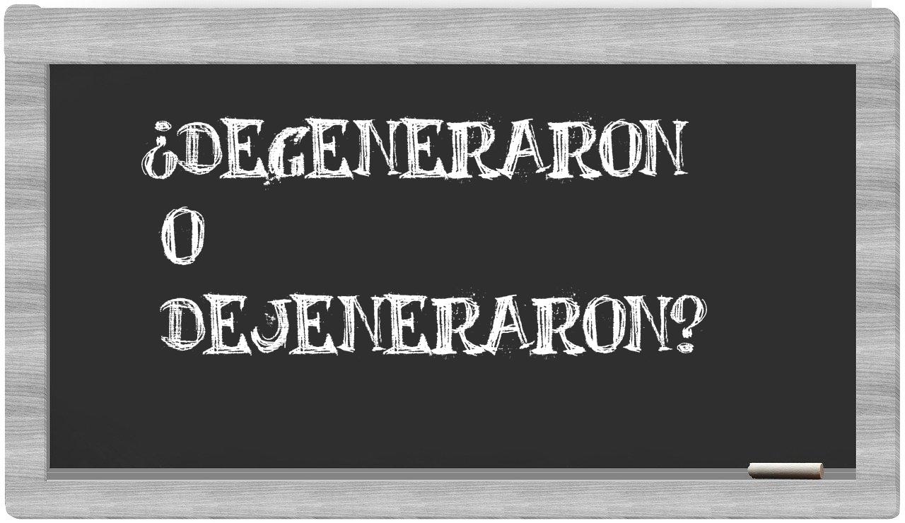 Cuando se trata de las palabras degeneraron y dejeneraron, no hay lugar para la vacilación, puesto que únicamente degeneraron se encuentra correctamente formulada; de hecho, dejeneraron no figura en el repertorio del Diccionario de la Real Academia Española.