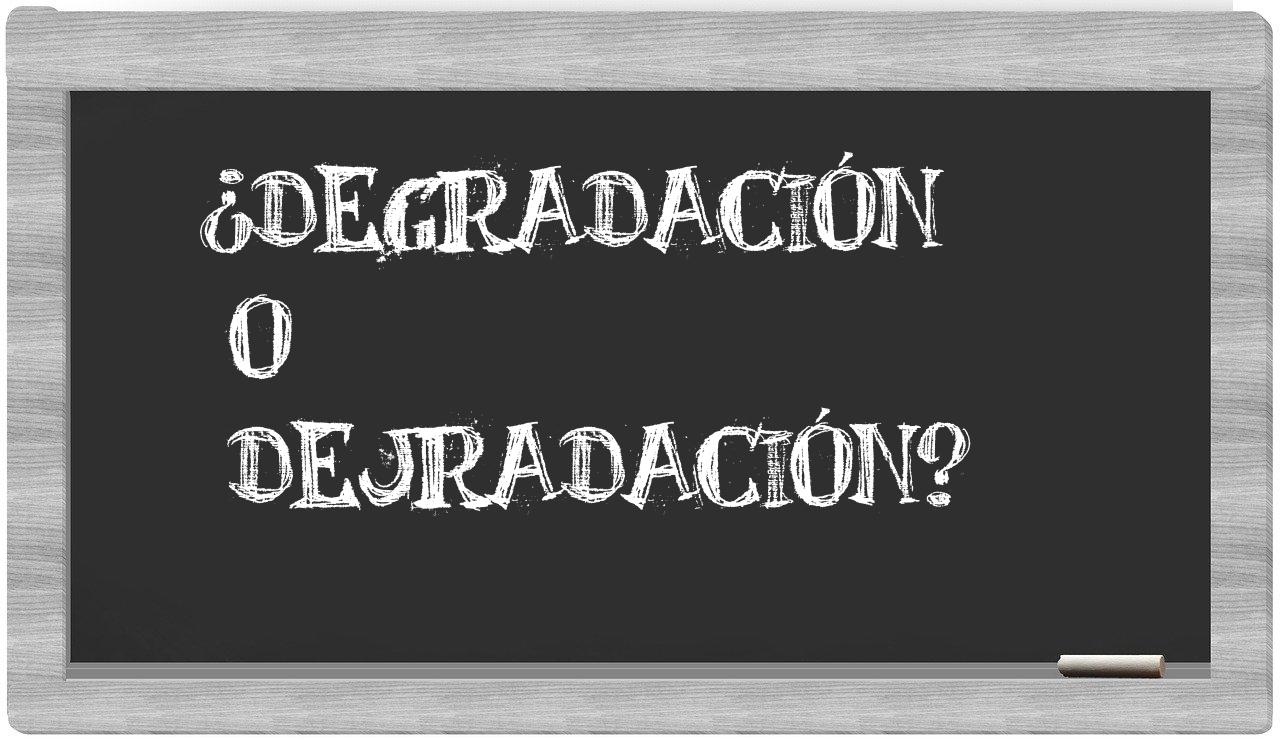En la particular situación que involucra los términos degradación y dejradación, no deberías experimentar incertidumbre alguna, puesto que únicamente degradación es la forma correcta y aceptada; por su parte, dejradación no figura en el Diccionario de la Real Academia Española.