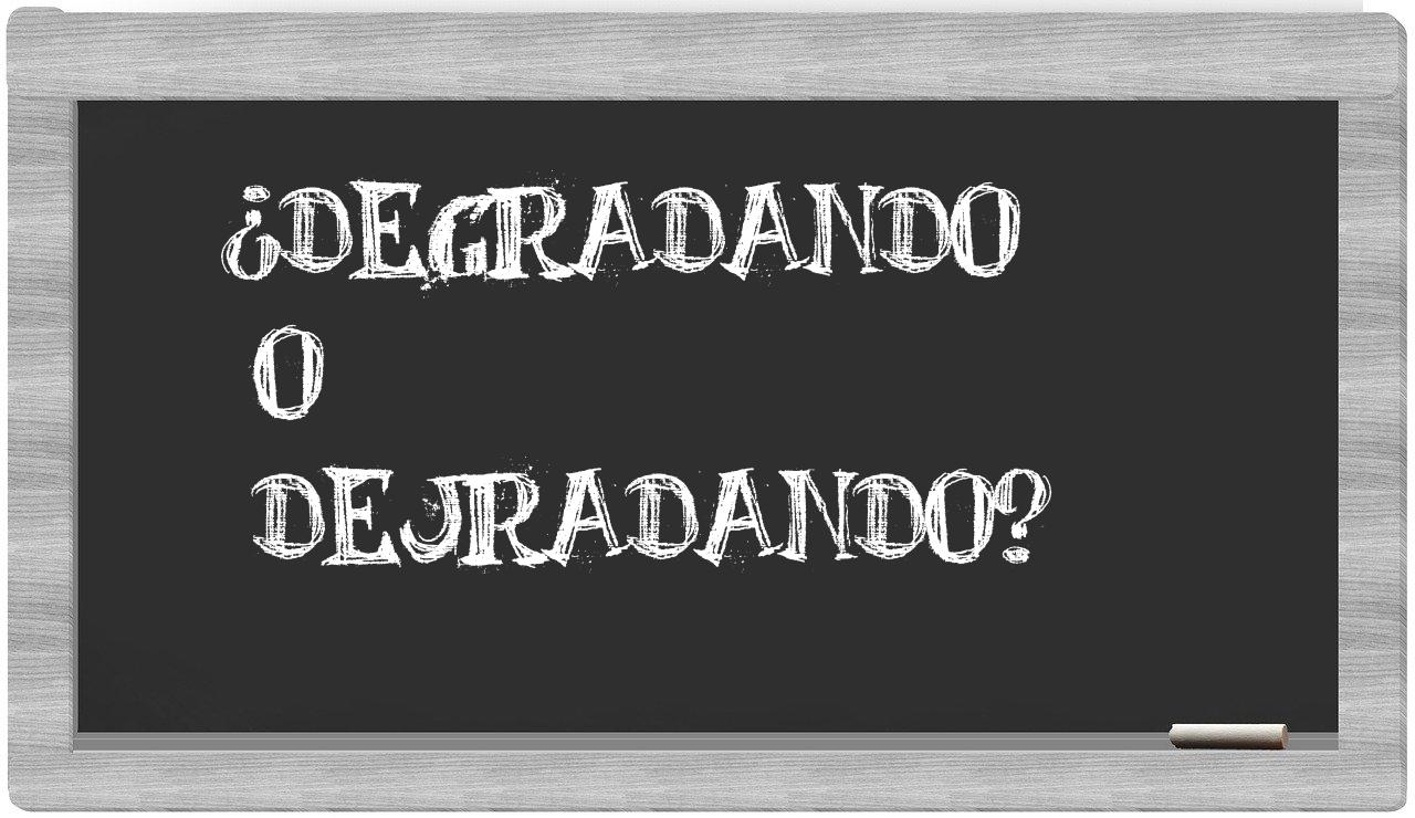 La mezcla que a menudo se produce entre degradando y dejradando se origina, en gran medida, en la similitud de su pronunciación. En la mayoría de las variantes del español, ambos términos se pronuncian de forma casi idéntica, lo que puede inducir a error respecto a su escritura. No obstante, la forma correcta de redactar cada uno de ellos está determinada por su raíz etimológica y por las normas concretas de la lengua española en materia de ortografía.