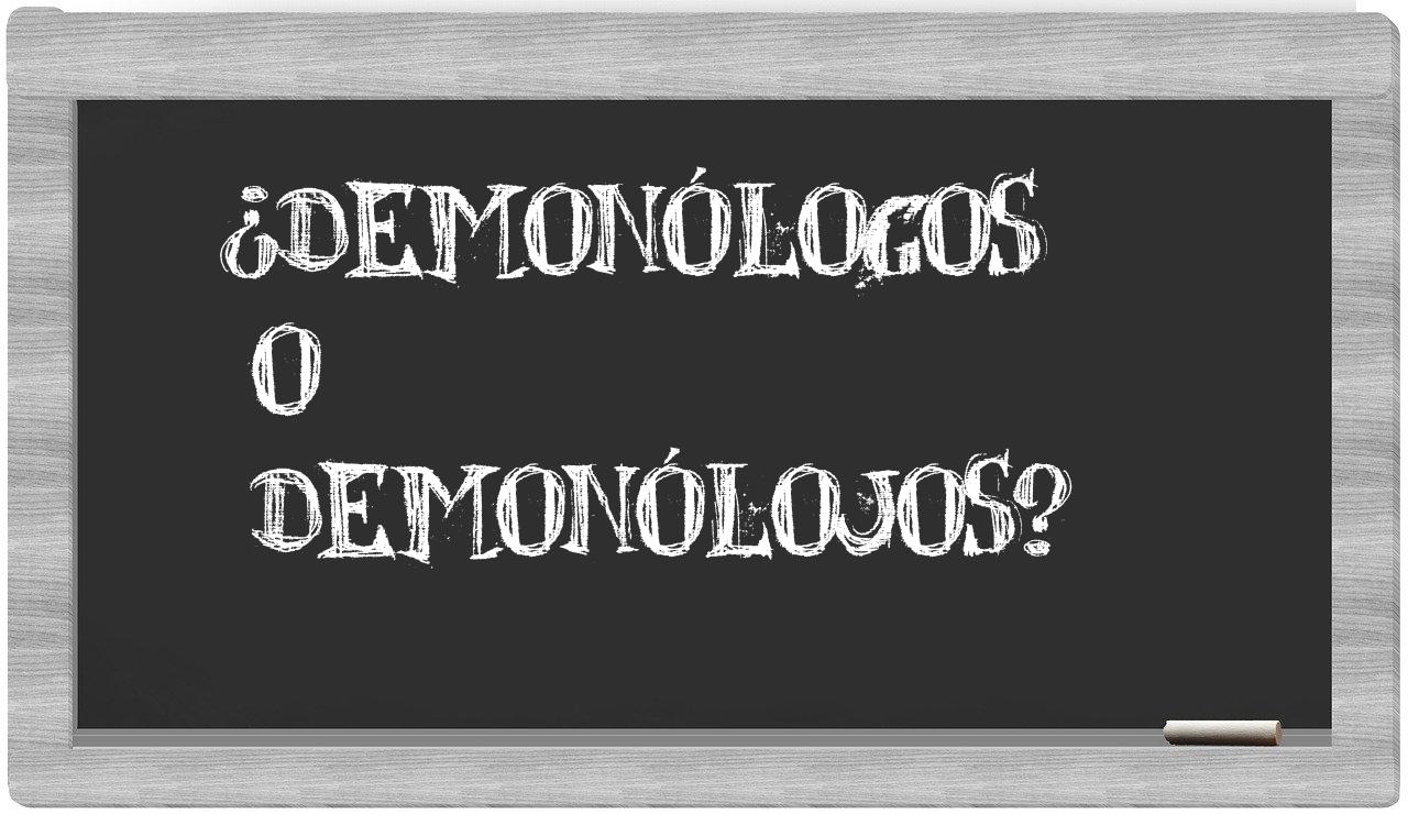 Cuando se trata de la comparación entre demonólogos y demonólojos, la elección es clara y no debería generar ninguna incertidumbre, puesto que exclusivamente demonólogos se encuentra debidamente registrada en el Diccionario de la Real Academia de la Lengua, mientras que demonólojos carece de reconocimiento en su obra.