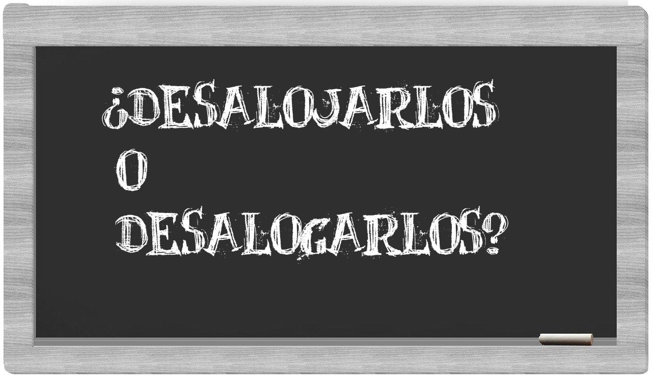 Cuando se trata de decidir entre desalojarlos y desalogarlos, debes estar plenamente convencido, pues únicamente desalojarlos es la opción que se encuentra correctamente registrada. Por otro lado, desalogarlos no figura en el prestigioso Diccionario de la Real Academia Española.