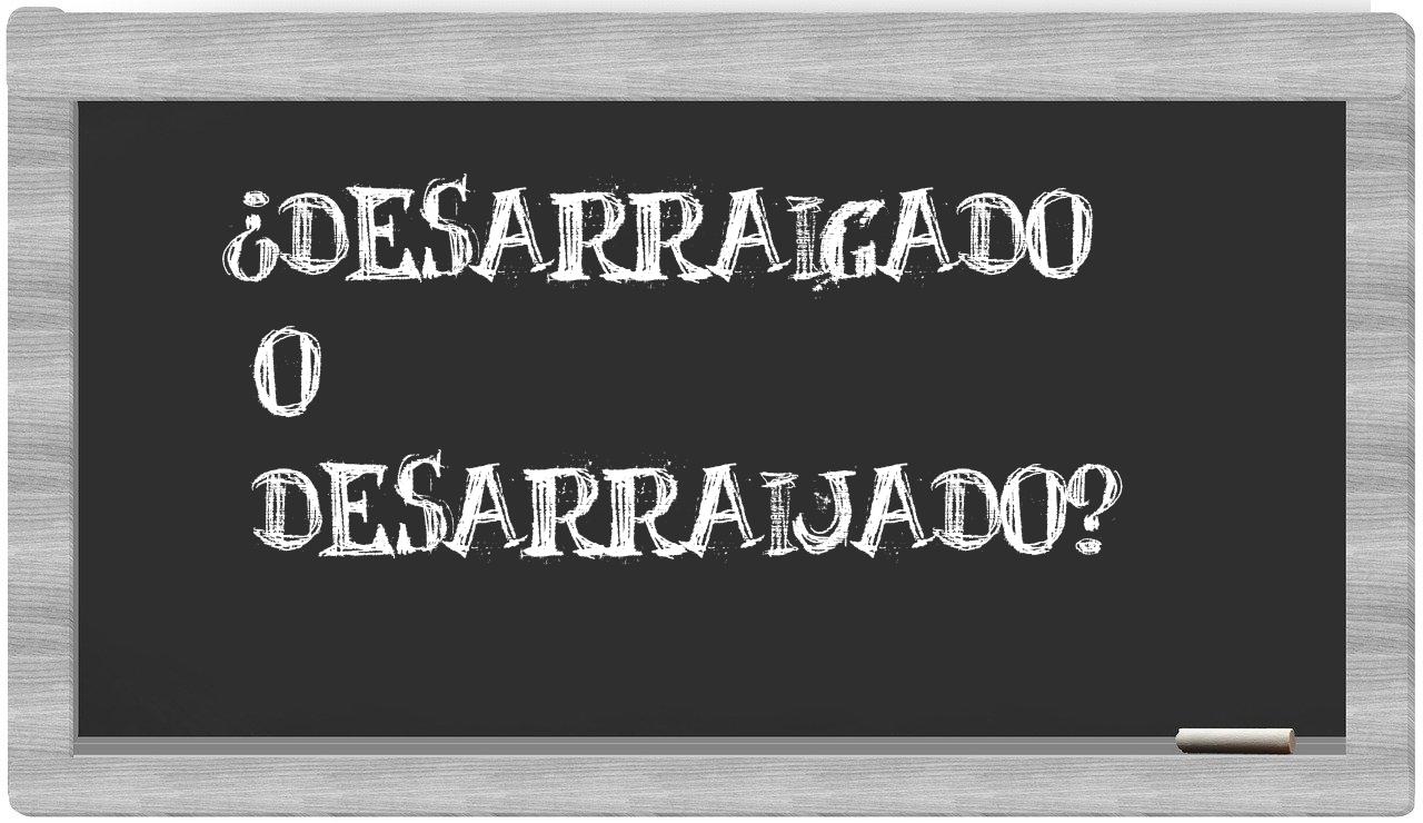 Referente a la distinción que debe hacerse entre desarraigado y desarraijado, no debes experimentar incertidumbre, puesto que únicamente desarraigado es la forma adecuada que figura en el Diccionario de la Real Academia Española, mientras que desarraijado carece de reconocimiento en dicho compendio lingüístico.