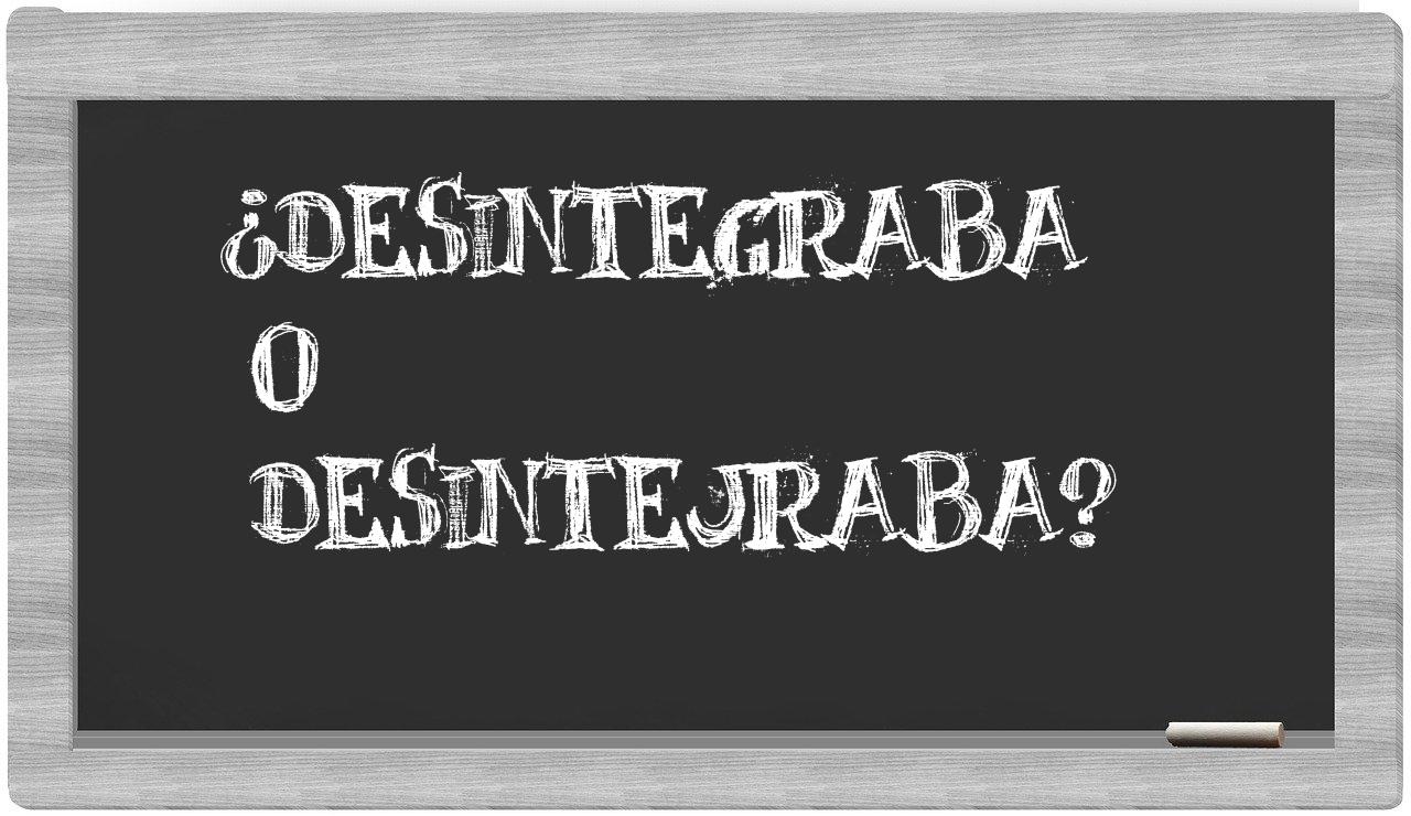 Cuando se trata de la distinción entre desintegraba y desintejraba, no cabe la menor incertidumbre, puesto que únicamente desintegraba figura en las páginas del Diccionario de la Real Academia Española, mientras que desintejraba es completamente ajena a su contenido.
