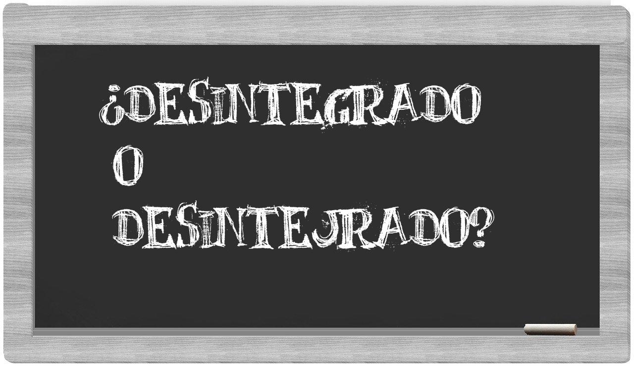En la situación particular que involucra a desintegrado y desintejrado, nunca debes titubear, puesto que únicamente desintegrado es la forma adecuada; por otro lado, desintejrado no se encuentra registrada en el Diccionario de la Real Academia Española.