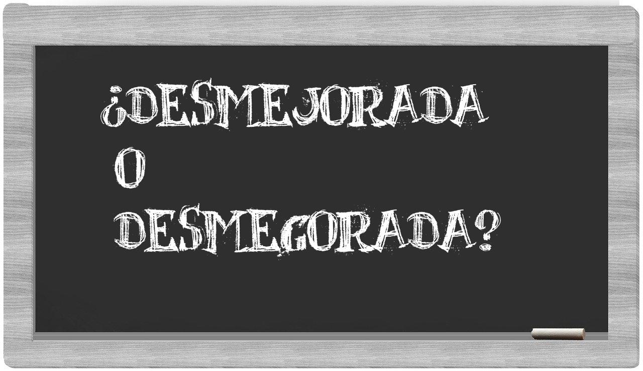 Cuando te enfrentes a la elección entre desmejorada y desmegorada, no permitas que la incertidumbre te abrume, porque únicamente desmejorada es la forma adecuada; desmegorada, por otro lado, no se encuentra registrada en el prestigioso Diccionario de la Real Academia Española.