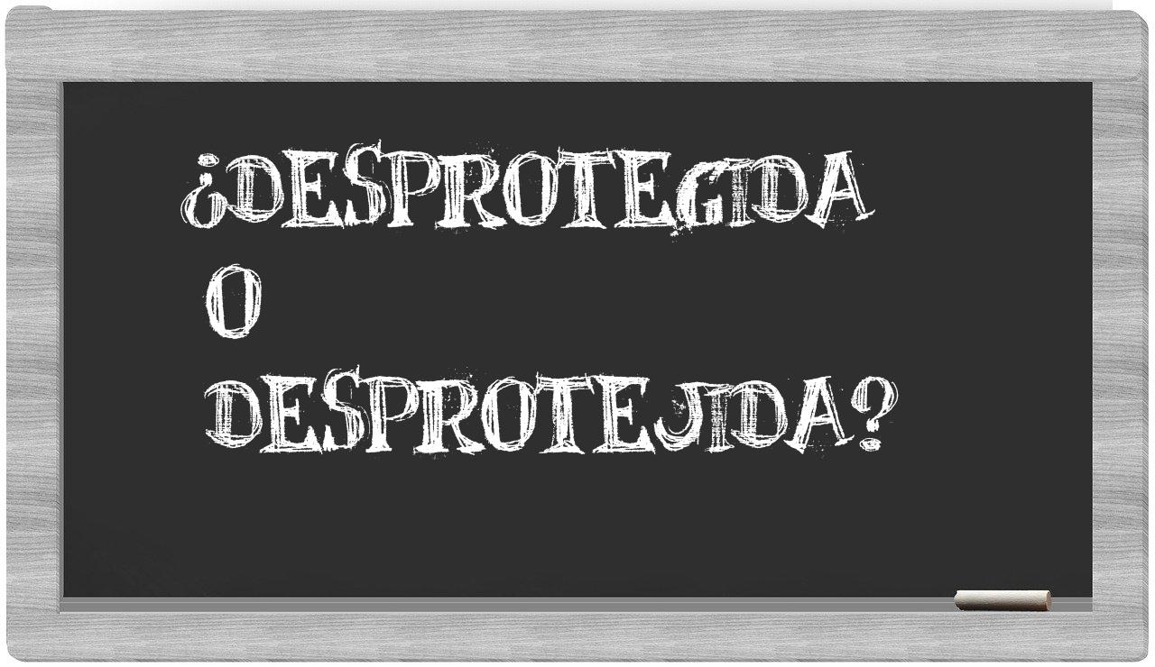 En la particular situación que se presenta entre los términos desprotegida y desprotejida, no hay razón para titubear, pues únicamente desprotegida se encuentra adecuadamente redactada; por otro lado, desprotejida no se halla registrada en el Diccionario de la Real Academia Española.