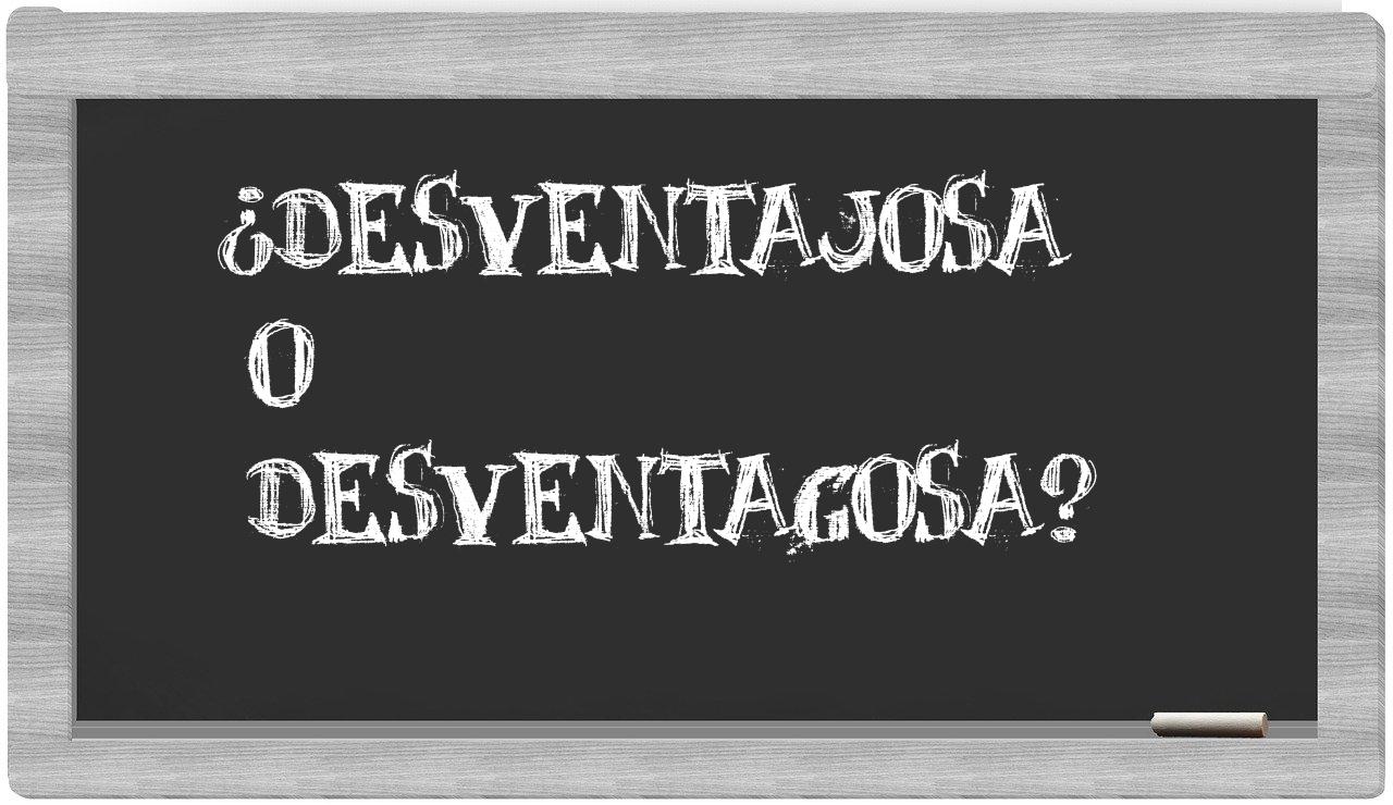 Cuando se trata de la elección entre desventajosa y desventagosa, la decisión es clara y no deja lugar a la incertidumbre, puesto que únicamente desventajosa se encuentra debidamente registrada en el Diccionario de la Real Academia Española, mientras que desventagosa carece de reconocimiento oficial.