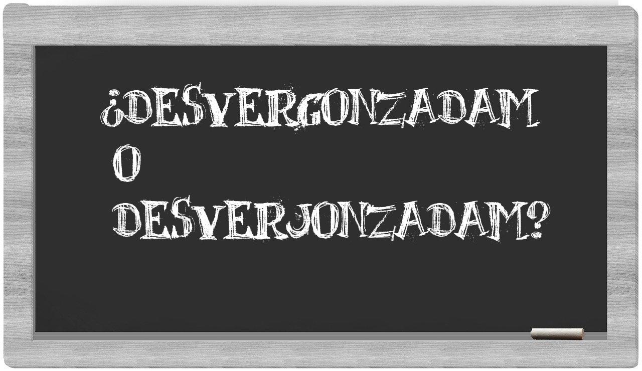 Cuando te enfrentes a la elección entre desvergonzadam y desverjonzadam, recuerda que la única opción válida y aceptada es desvergonzadam, puesto que desverjonzadam carece de reconocimiento en el Diccionario de la Real Academia Española.