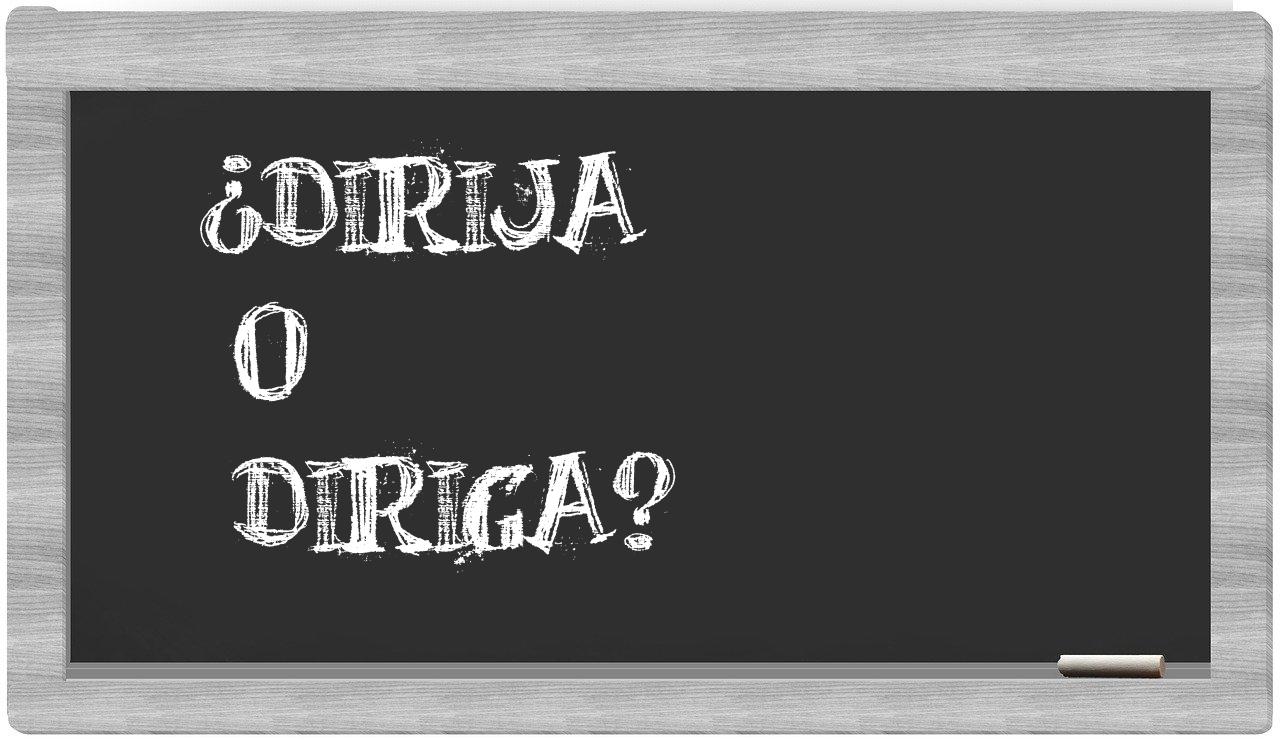 Cuando se trata de discernir entre dirija y diriga, no hay lugar para la incertidumbre, puesto que únicamente dirija es la forma adecuada, mientras que diriga no es reconocida en el Diccionario de la Real Academia Española.