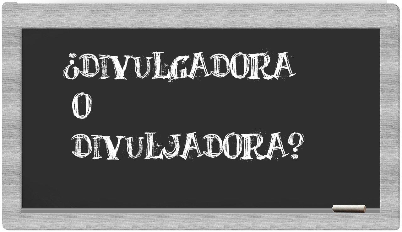 En la situación particular que involucra los términos divulgadora y divuljadora, no deberías titubear en absoluto, pues únicamente divulgadora se encuentra debidamente registrada y aceptada, mientras que divuljadora no figura en el léxico de la Real Academia Española.